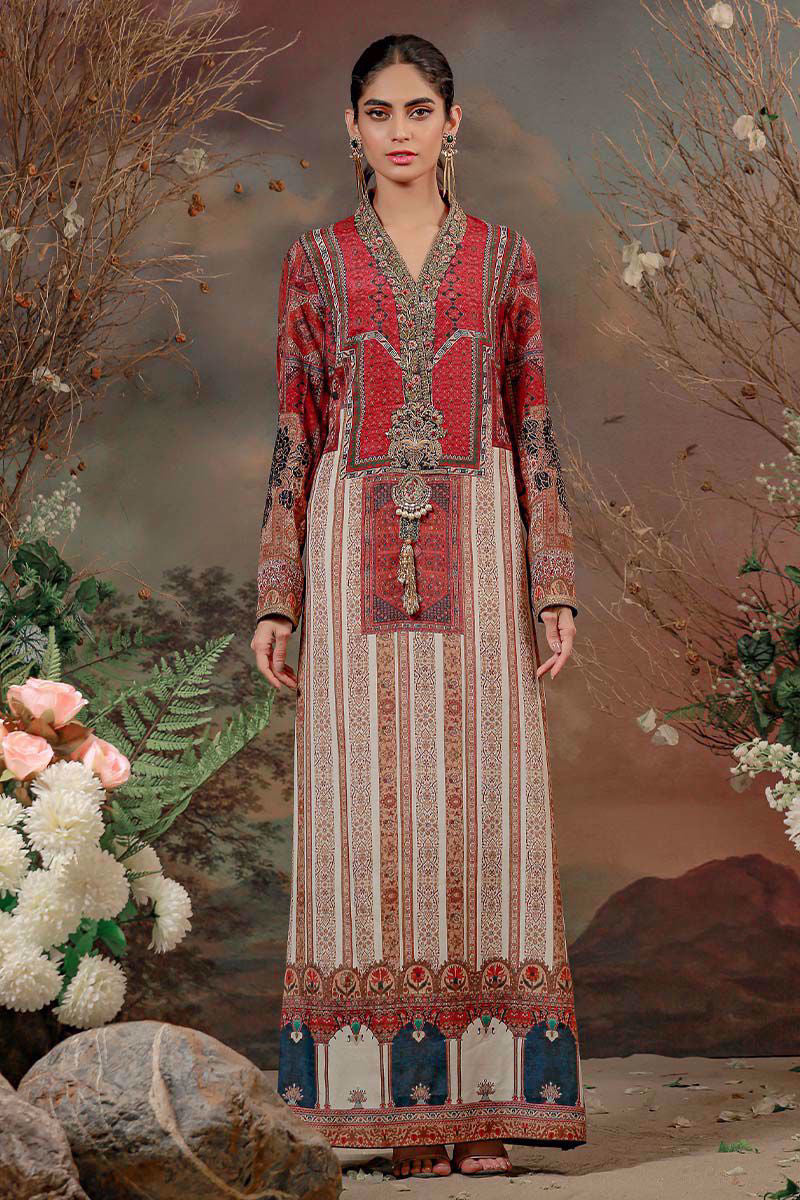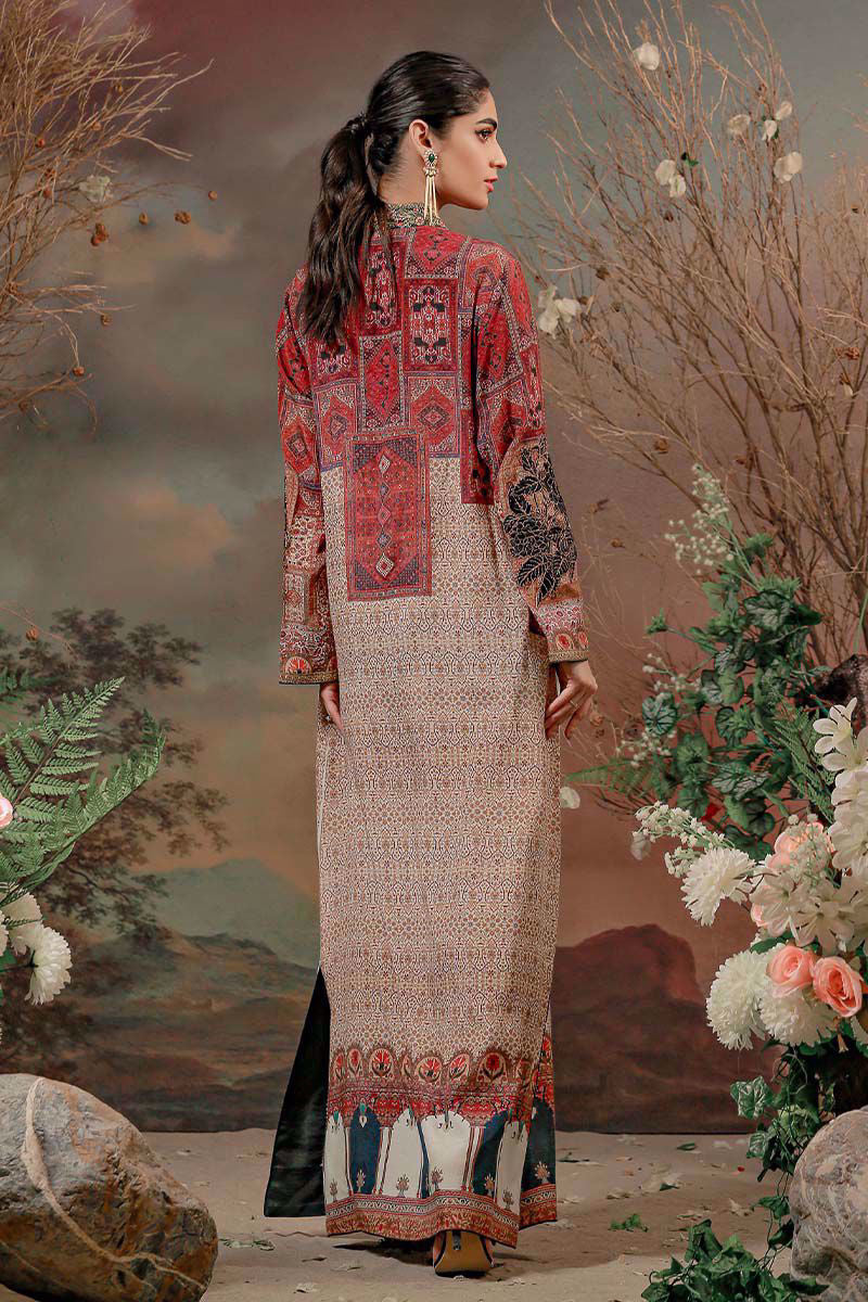 Beautifully printed kurta on silk fabric with a chic silhouette. delicate printed kashmiri inspired design. beautiful delicate taankas embroidered on the gallah in the style of kashmiri textiles. thoughtfully crafted ornamental embroideries with delicate zardozi work.
