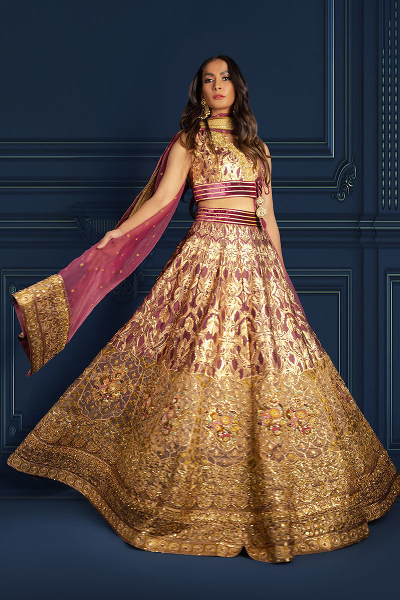 Beautiful lehnga choli hand embroidered choli made with antique gold tila thread intricate zardozi work on the galla plain gotta lines on the pure velvet border finished with handcrafted zardzoi work tassels. Gorgeous flowy lehnga made with handcrafted antique tila embroidery and antique sequins work intricate handcrafted heavy antique gold zardozi work on the borders. Looks best when paired with antique gold sequin chaan organza duppatta finished with handmade tila thread and antique gold sequin lace.