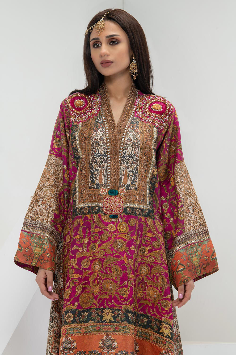 • Kundan and Gold Zari tilpat on the neckline