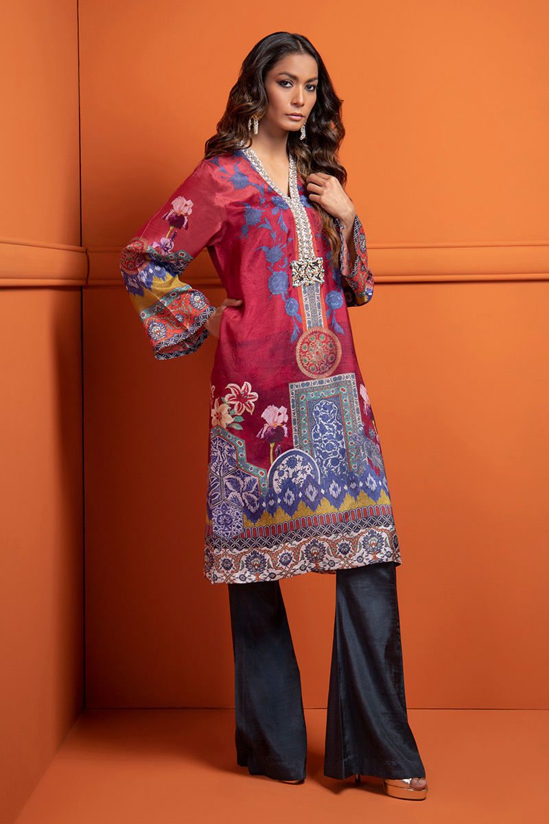 Classic traditional basic kurta print on beautiful shades of pink textural silk canvas intricate handcrafted galla tilpat made with pearls, silver sequence, silver and gold dapka, stones, silver naqshi and gota.